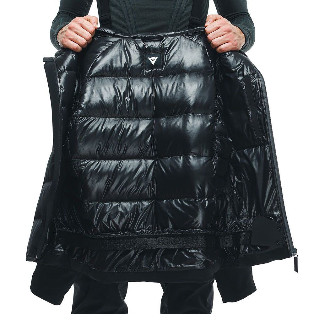 Skijaške jakne su kultni deo Dainese kolekcije, dizajnirane da maksimiziraju toplotnu izolaciju i obezbede vrhunski komfor u svim vremenskim uslovima. SKI DOWNJACKET je obavezna za zimu. Jakna sa Dermizax® EV 20.000 mm, 20.000 g/m², vodootpornom membranom koja traje 24 sata, elastična u četiri smera i toplom podstavom od guščjeg paperja od 750 fill power. Pogodna za bilo koju aktivnost na snegu zahvaljujući visokom nivou pokretljivosti i prozračnosti koje garantuje elastična membrana i značajnim izolacionim svojstvima. Fiksna kapuljača, unutrašnje gamaše oko struka i snežne manžetne unutar rukava zaokružuju detalje odeće dizajnirane da odgovara svim uslovima.