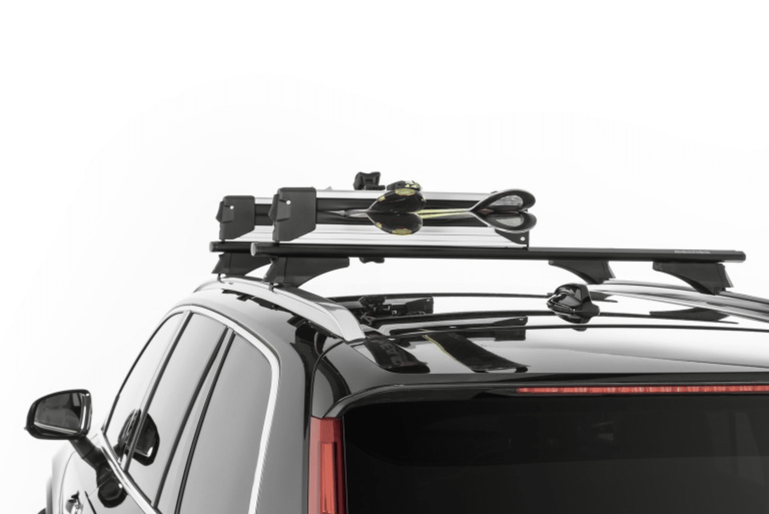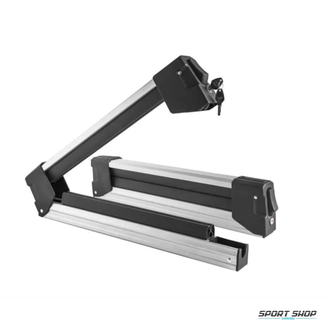 Aluminijski stalak za skije za do 4 para skija ili 2 snowboarda. Lako se može postaviti na krovne šipke pomoću standardnog T-sistema i ima bravu protiv krađe.
